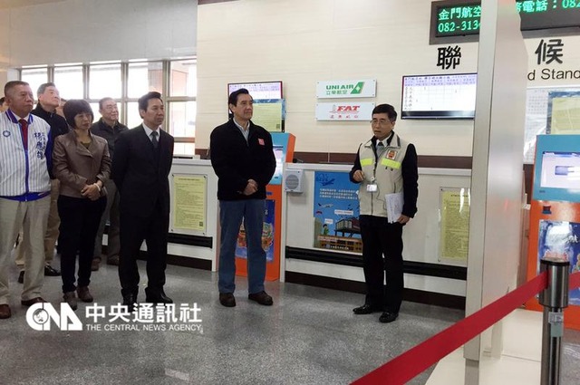 2016年的第二天,馬英九總統今天(2日)一早搭乘專機來到金門,縣長陳福海帶領官員迎接。馬總統視察金門尚義機場營運現況,並到金門大橋施工地點,了解工程進度。
